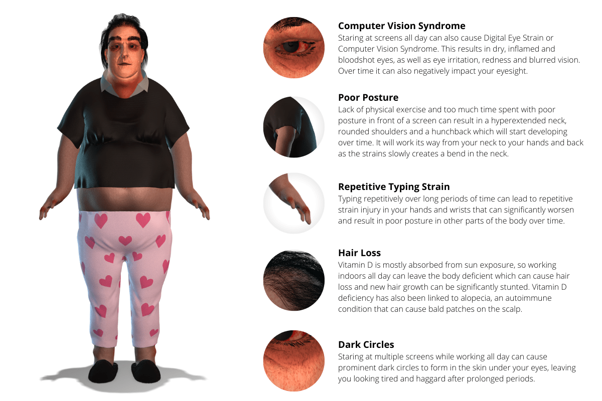 - Working longer hours to compensate for the economic slowdown and minimise the impact on your business; doing overtime with no breaks.